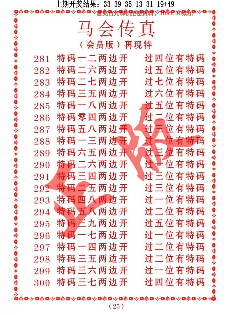 | 300期:♻⑤尾中特♻【0/3/4/6/7尾】开:虎40中 |